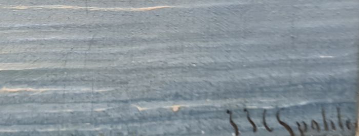 The painting was once restretched, and is in a gold leaf frame of Flippo.