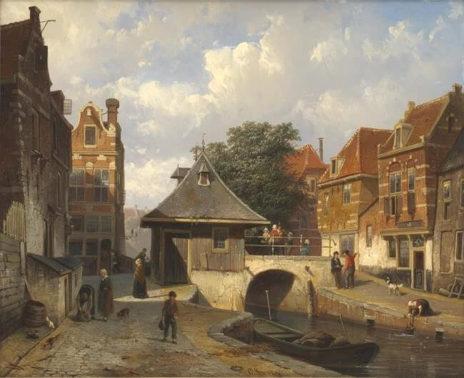 J. Kiers (20th century) After Cornelis Springer – The Visch Bridge over the Oude Rijn in Woerden